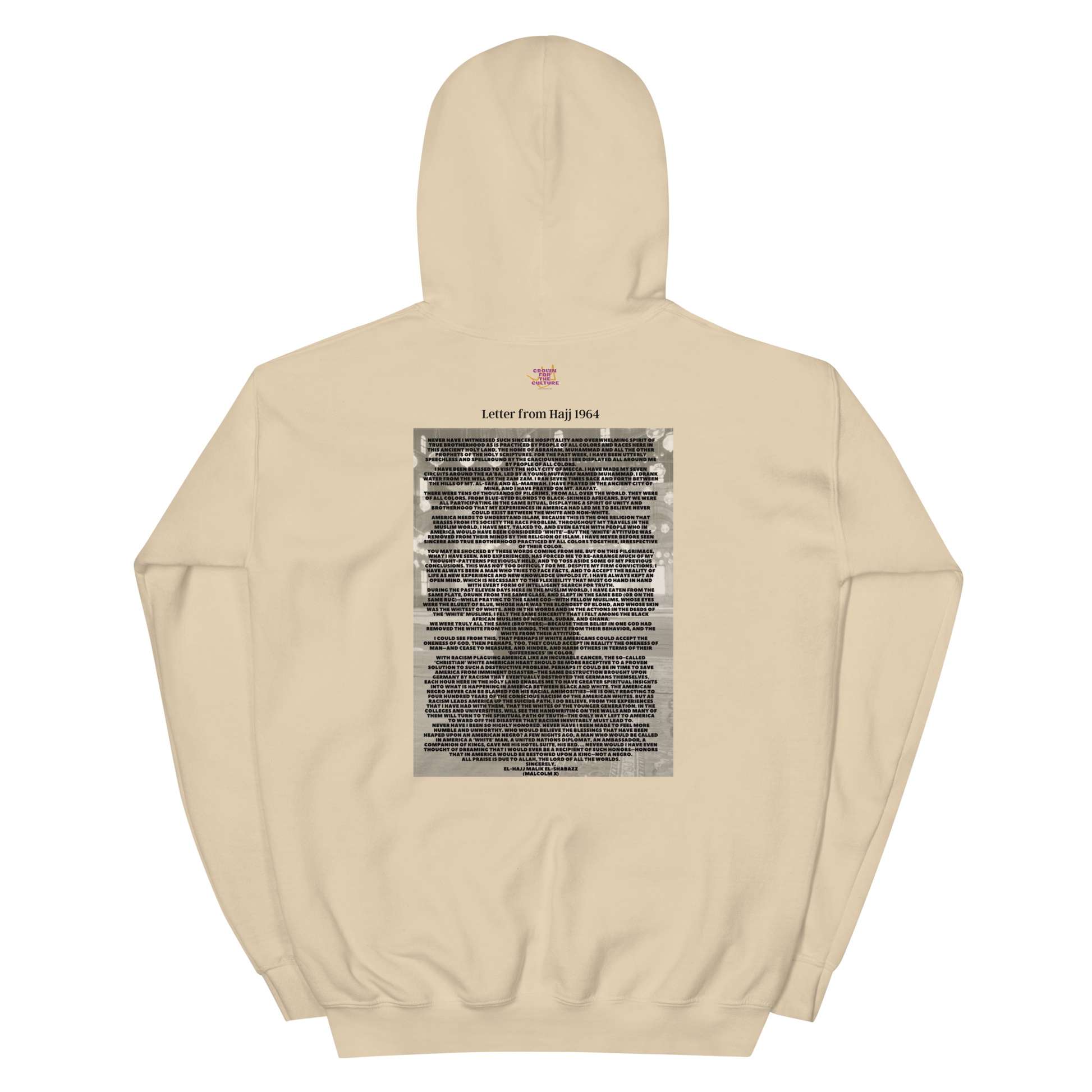 "Don't Speak the Change Be the Change". Multiple Malcolm mugshots on the front w. Malcolms Letter from Hajj in 1964 printed on the back. Unisex Fit & multiple colorways.