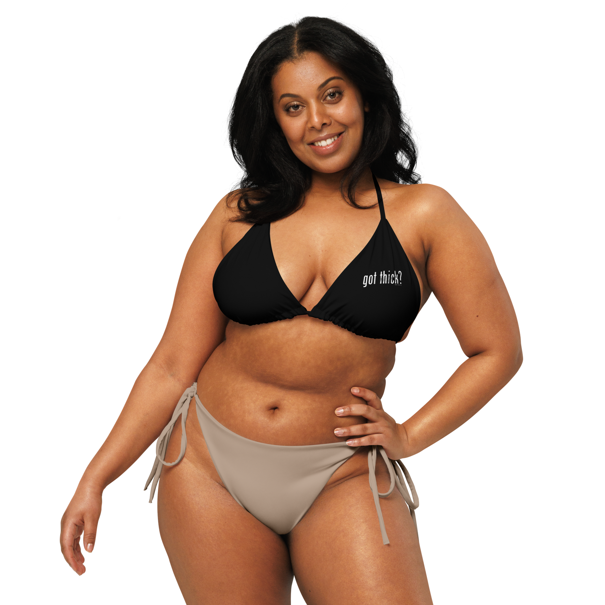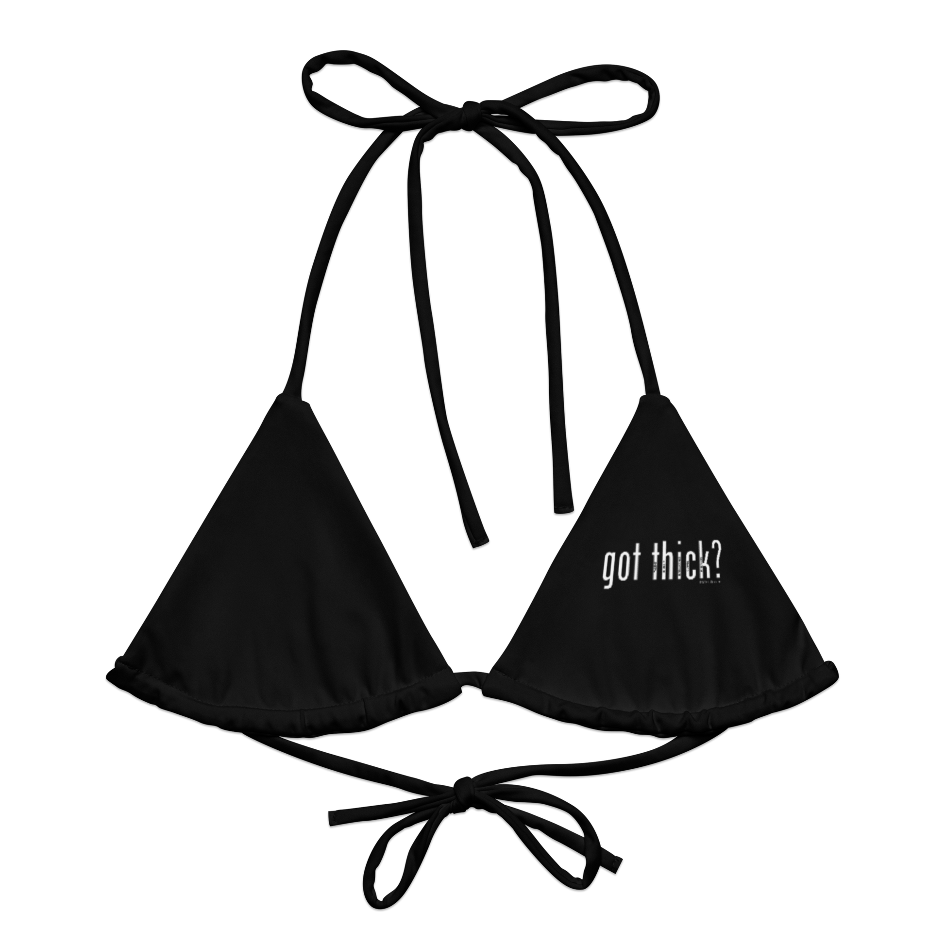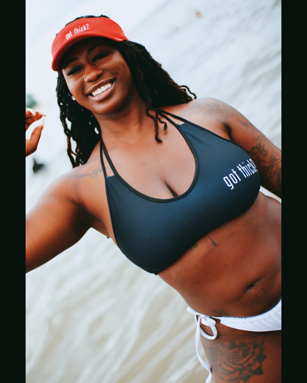 Yessss.. We ready for the beach, pool, the house or a baecation with the Got Thick? “Kini” Top. Super comfy and it’s even reversible.