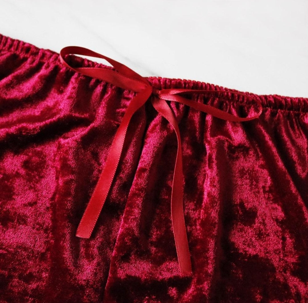 Get sexy and comfy in our new velvety smooth 2pc sleepwear. The material has some stretch and its breathable. This sleepwear runs a bit small so ladies we suggest sizing up.